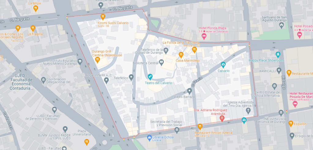 Imagen actual del Barrio del Calvario en la Ciudad de Durango.