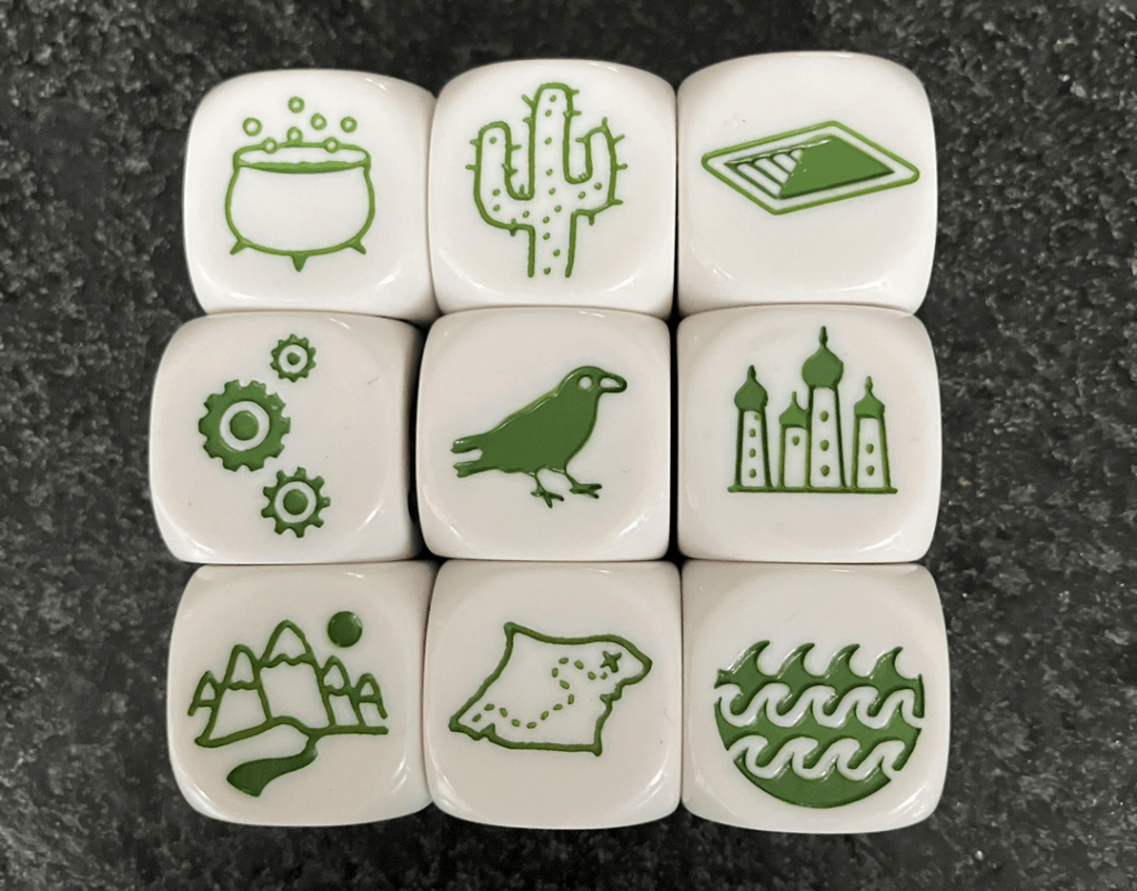 Esta es una historia desarrollada con StoryCubes. Esta imagen muestra lo que arrojaron los dados. Y esta es la historia que escribí.