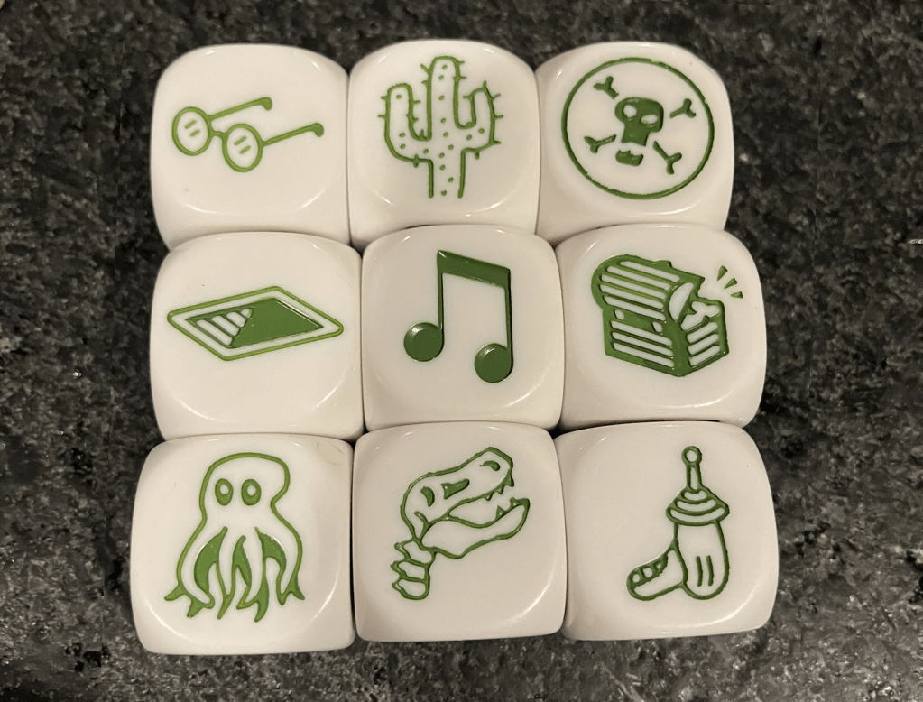 Esta es una historia desarrollada con StoryCubes. Esta imagen muestra lo que arrojaron los dados. Y esta es la historia que escribí.